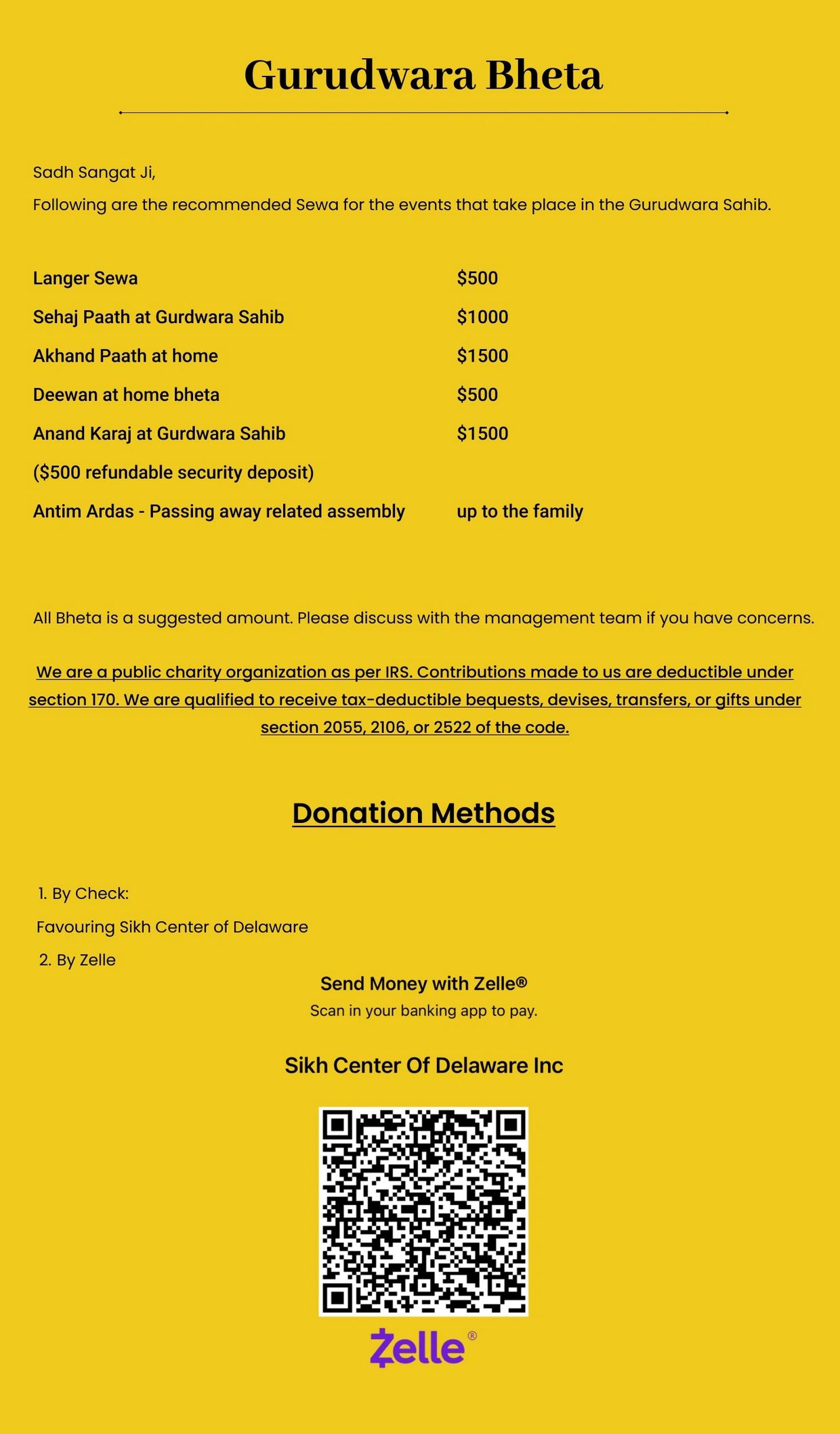 3. By Credit Card / Debit Card/ Google Pay - Click here https://pay.sikhcenterofdelaware.org/